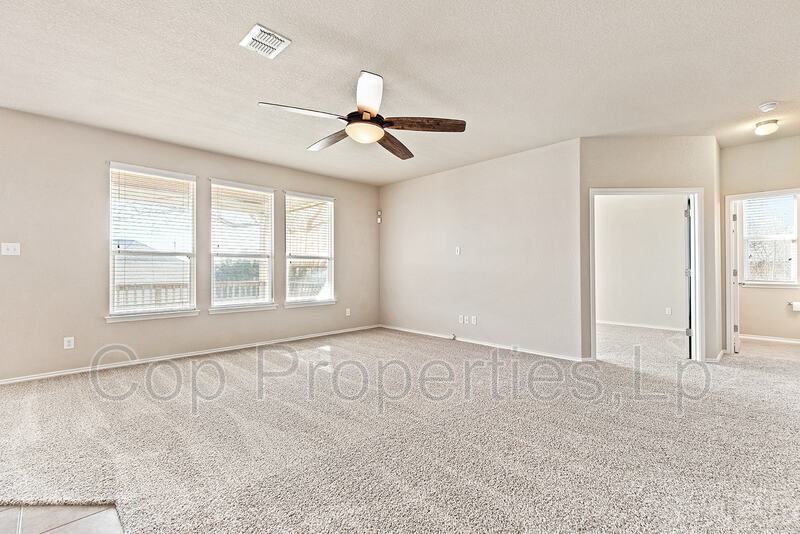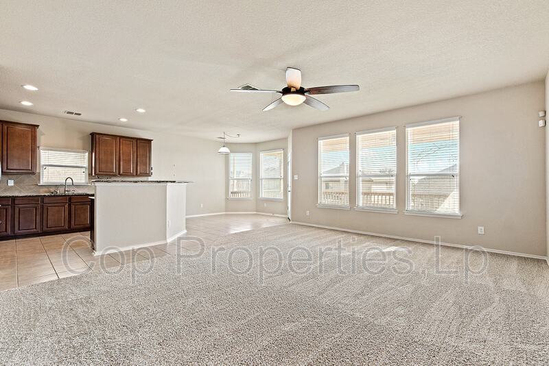 This well-located two-story home features an open-concept kitchen with a large island, walk-in pantry, and included appliances, flowing into the family room and overlooking a fenced backyard with covered patio. A private study and formal room are located downstairs, while all bedrooms are upstairs. The spacious primary suite offers a sitting area, separate shower, garden tub, double vanities, and a large walk-in closet. Four secondary bedrooms share two full baths and a game room. Conveniently located near shopping, schools, neighborhood amenities, military bases, and with easy access to Hwy 151 and Loop 1604. Move-in ready.